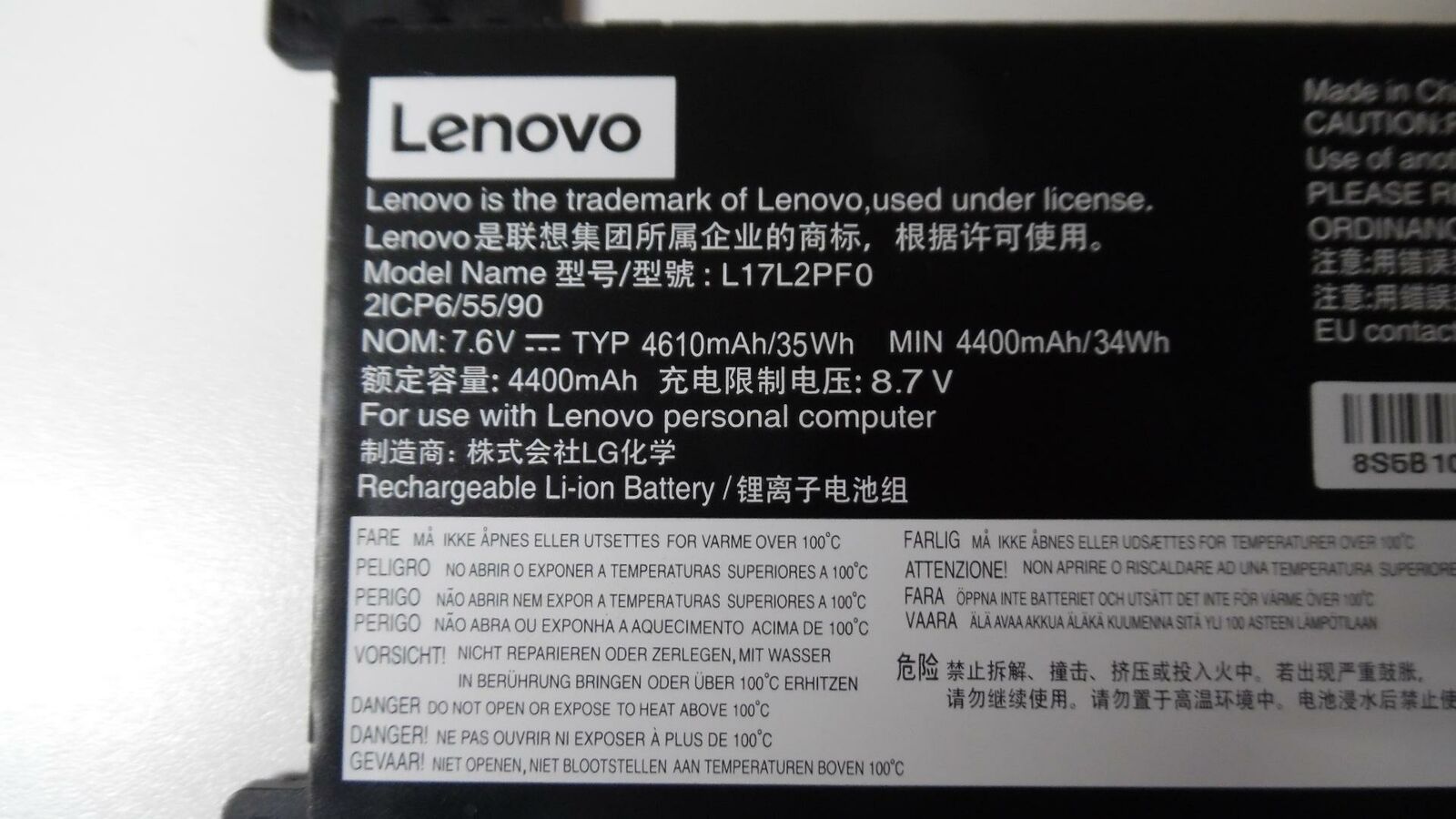 Lenovo 7.6v 4400mah 34wh Battery – L17L2PF0– MPN: L17L2PF0