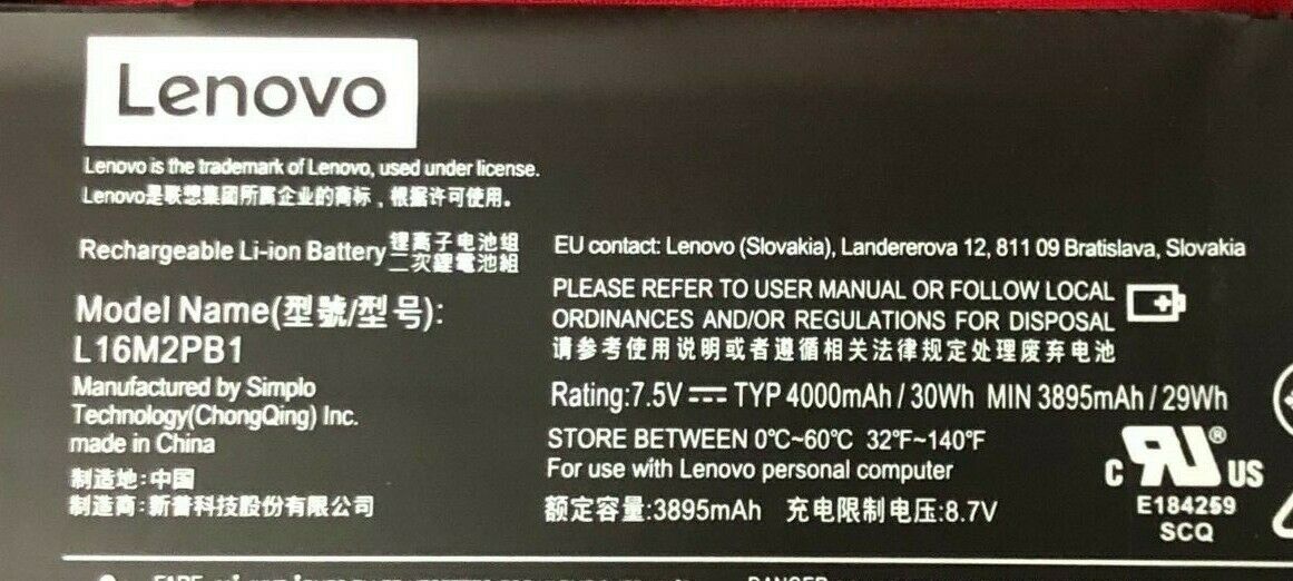 - Supplied Model no will be L16M2PB1 Lenovo Part no may be Different.